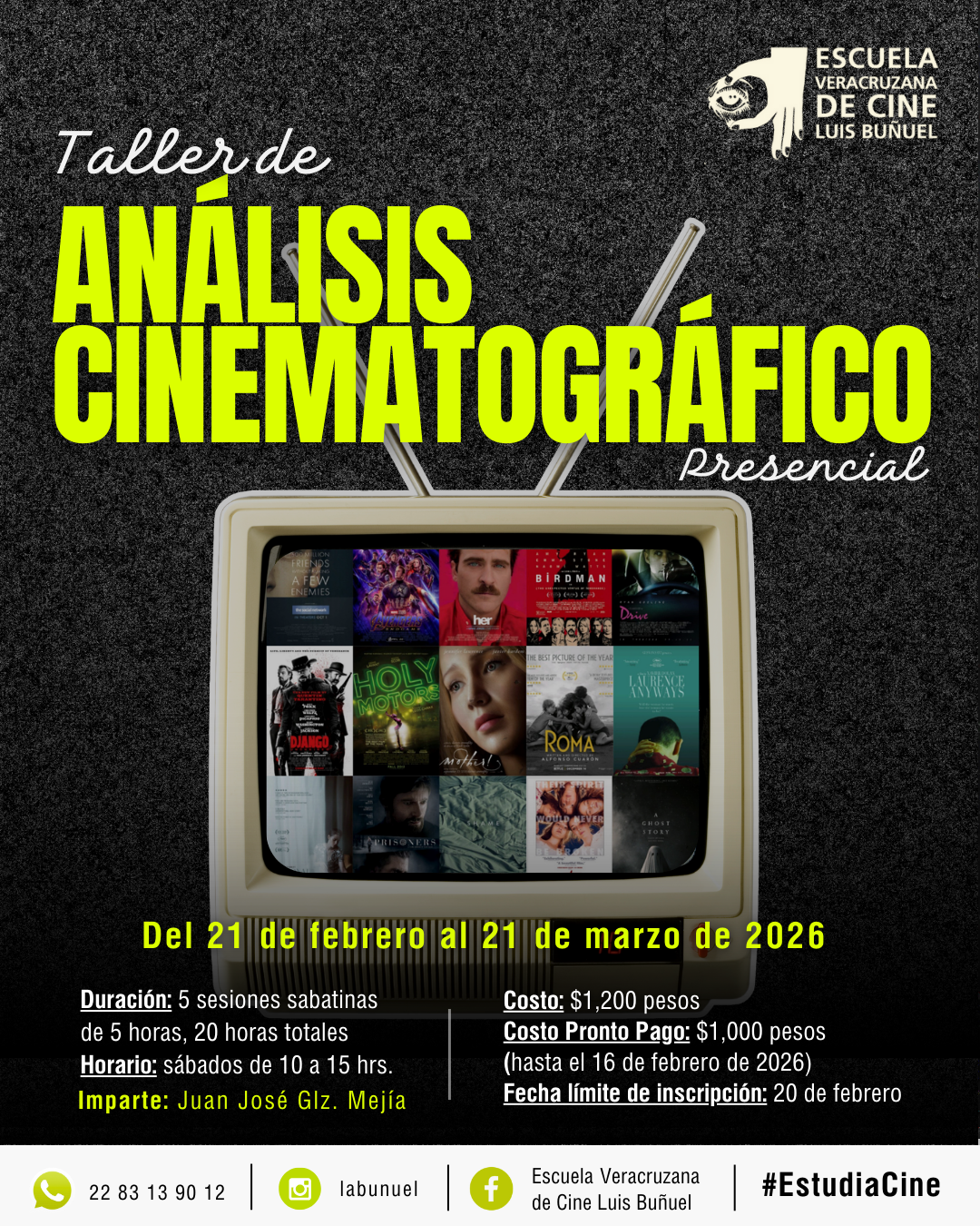 El Taller de Análisis Cinematográfico tiene como finalidad acercar a los cursantes a los elementos estéticos que faciliten la apreciación, el análisis y el disfrute de la obra fílmica. Para ello, se analizarán secuencias de filmes notables con el fin de desglosar sus valores artísticos y establecer un método de análisis en el que la apreciación y el juicio estético coadyuven a una lectura valorativa.